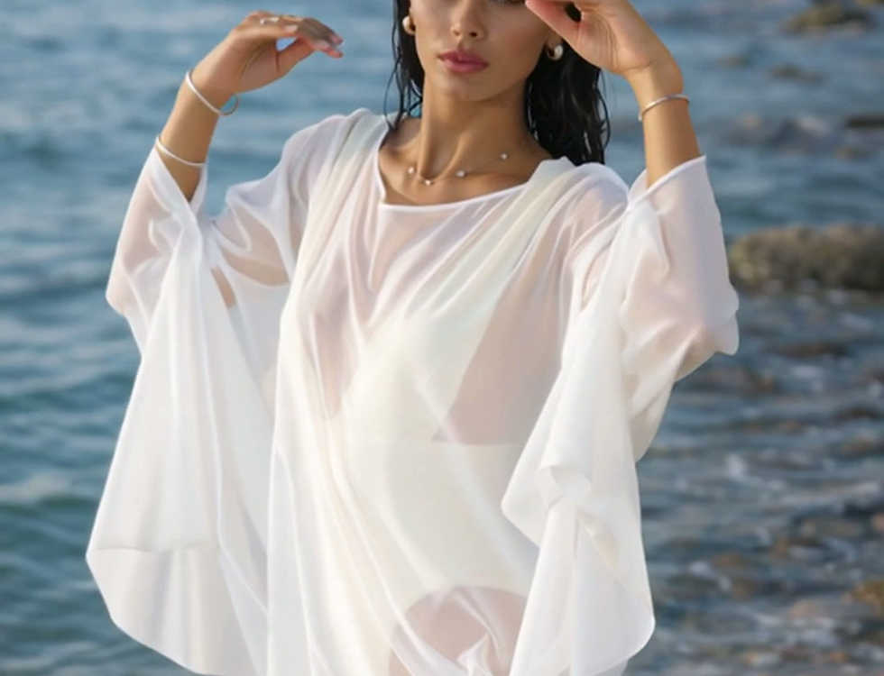 Tento přehoz přes plavky je navržen pro ženy, které hledají přirozený luxus, čistou estetiku a svobodu pohybu.